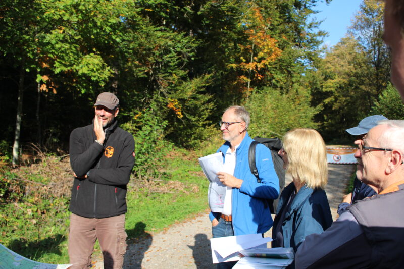 Am 11.10. trafen sich bei schönstem Oktoberwetter etwa 20 Interessierte im Wald bei Bad Säckingen. Nach einer kurzen Begrüßung von Kathrin (OV Bad Säckingen) lernte die Gruppe den aktuellen Stand der Planung zur Streckenführung der A98 kennen. Momentan sind zwei Tunnel auf dem Stadtgebiet vorgesehen. Eine Herausforderung wird die Querung der Rippolingerstraße sein. Dieses Areal betrachteten wir zusammen mit Revierförster Gabriel Hieke oberhalb des Werksgeländes der Schluchseewerke. Eine weitere Herausforderung bleibt die Ausgestaltung der Anschlussstellen. Diese liegen teilweise sehr nahe bei oder auch in FFH-Gebieten. Es gilt auch, zu bedenken, dass Wildtiere die künftige Autobahn queren können. Die Planungen laufen noch und können unter https://www.deges.de/projekte/projekt/a-98-abschnitt-6/ eingesehen werden. Wichtig wird sein, die Pläne genauestens zu betrachten, wenn diese offengelegt werden. Die Frist für mögliche Einsprüche beträgt 4 Wochen. Nach dem Ende des Waldspaziergangs gab es die Gelegenheit, sich bei einem kleinen Imbiss zu stärken und mit den Gemeinderäten, Kreisräten und unserem Abgeordneten Niklas Nüssle auszutauschen.